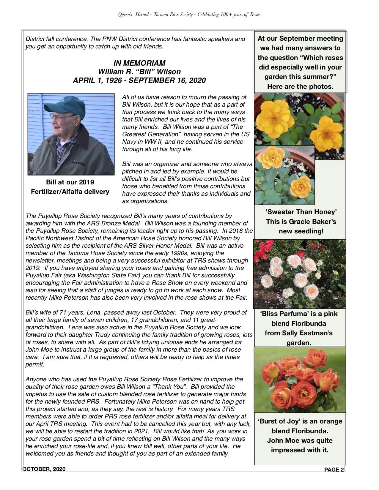 Oct. 30 & 31: The Fall Conference will be on Zoom this year. Details are on Pg 8.