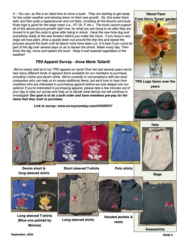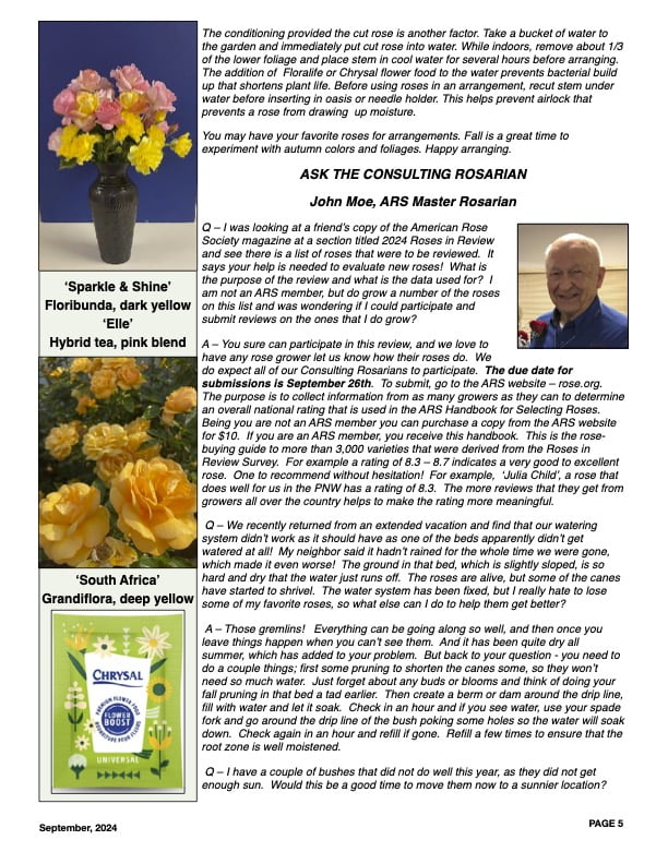 This month we’ll be “treated” to a presentation by John – full of “tips” on how to get our roses and rose gardens ready for the fall and winter.